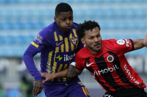 7. dakikada Ankaragücü adına ceza sahasında topla buluşan Mehmet Umut Nayir’in sert şutunu kaleci İrfan iki hamlede önledi.