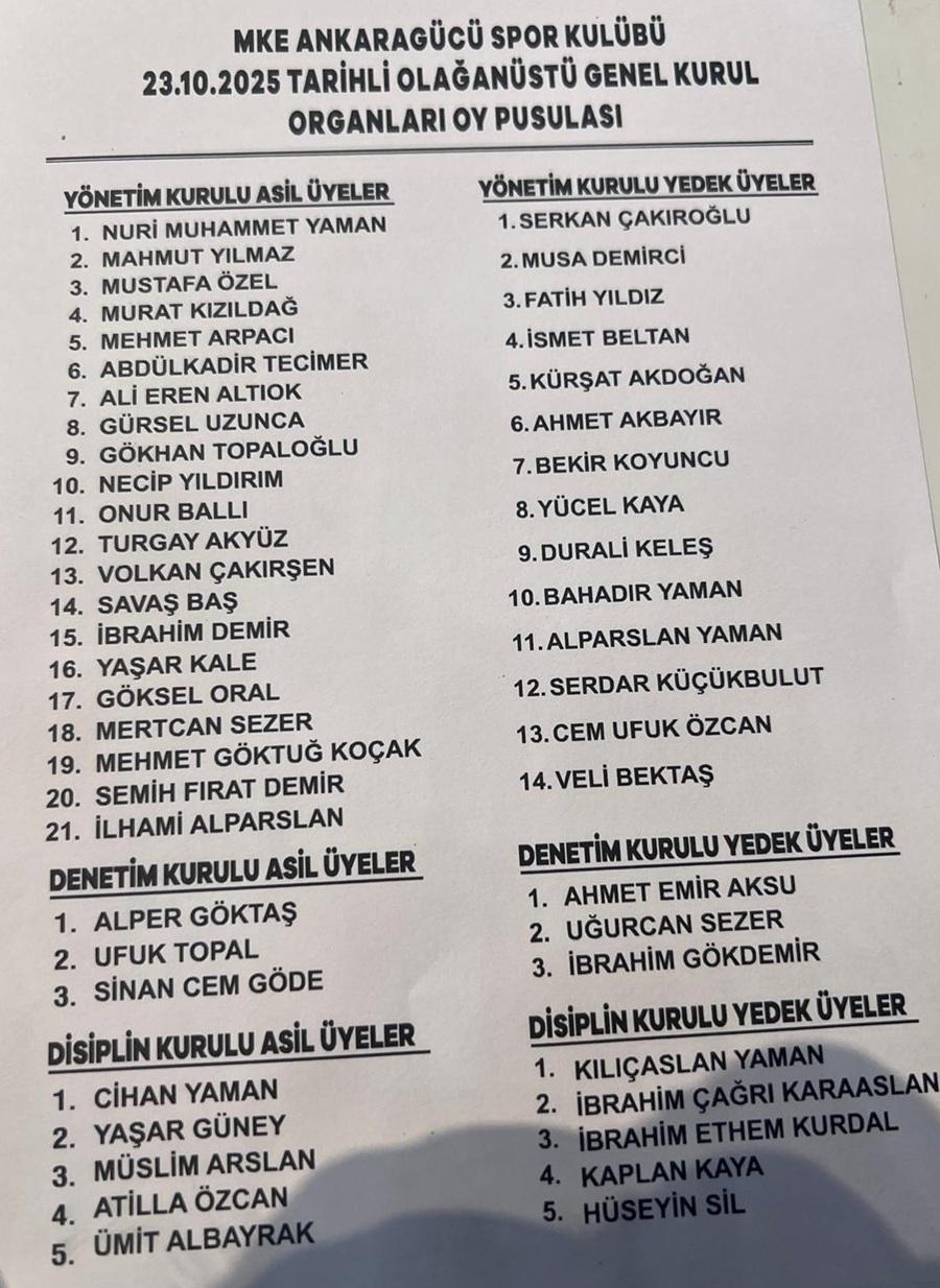İşte Ankaragücü’nde Seçime Giren İki Başkan Adayı Muhammet Yaman ve Serkan Ülker’in Listeleri