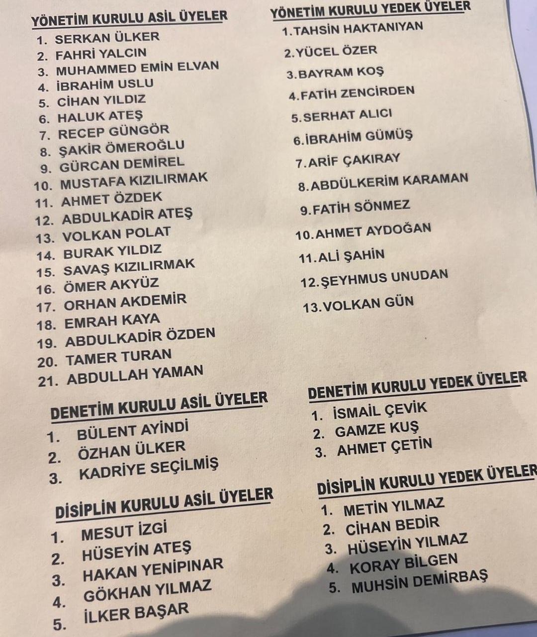 Ankaragücü Olağanüstü Genel Kurulu’nda başkan adayı olan Muhammet Yaman ve Serkan Ülker’in listeleri belli oldu. İşte iki adayın listeleri: MUHAMMET YAMAN SERKAN ÜLKER